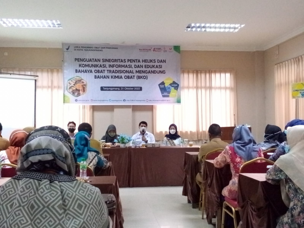 Putrakepri.com, Tanjungpinang – Dalam pengawasan obat tradisional yang mengandung bahan kimia obat badan Loka POM Tanjungpinang menggelar penguatan sinergitas pentaheliks dan komunikasi, Informasi dan edukasi bahaya obat tradisional mengandung bahaya kimia obat ( BKO ) bersama stakeholder terkait di Hotel Pelangi Tanjungpinang, Senin ( 31/10/22 ).
