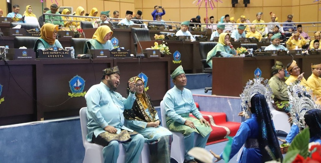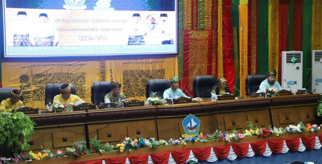 Dewan Perwakilan Rakyat Daerah (DPRD) Kabupaten Bintan menggelar rapat paripurna istimewa peringatan hari jadi ke-75 Kabupaten Bintan, di ruang sidang paripurna DPRD Kabupaten Bintan, Bandar Seri Bentan, Jum’at (1/12/2023) pagi.