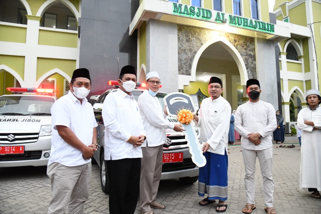 Dalam kesempatan ini Gubernur Kepri Ansar Ahmad menyerahkan 3 unit bantuan hibah mobil Amambulance jenazah Kepada yayasan Al Muhajirin Perumahan Mediterania, masjid Al Iman Tiban Indah, Kecamatan Sekupang, dan masjid Baiturrahman, Perumahan Rindang Garden Kelurahan Buliang Batu Aji Batam