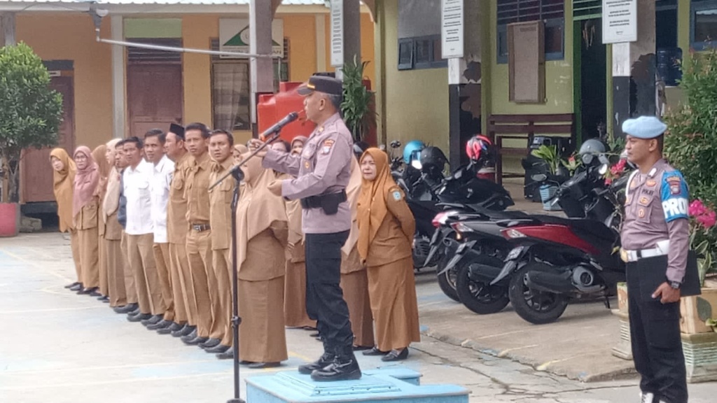 Dalam rangka police goes to school, Kapolsek Siantan Iptu Gunawan Husen,SH menjadi Pembina Upacara dalam Upacara Bendera di SMP 2 Siantan, Senin (13/2/2023).