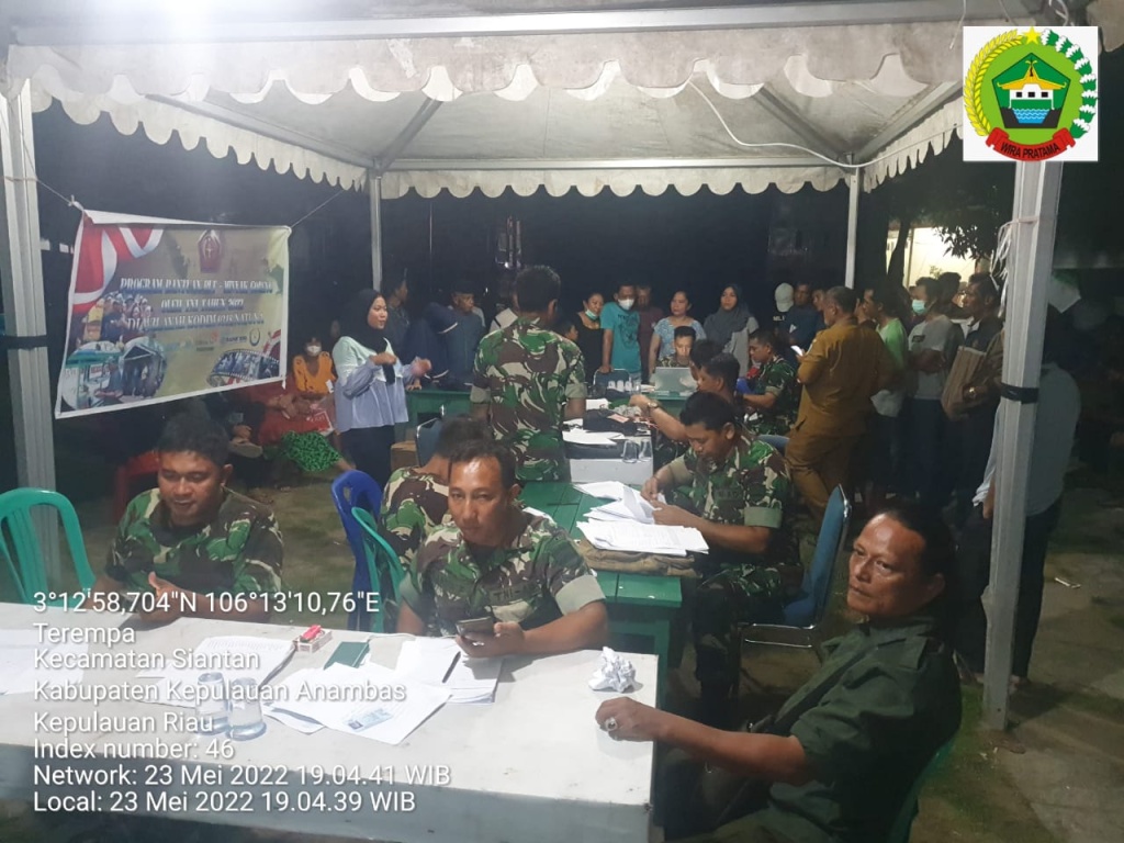 Secara serentak di 3 Koramil jajaran Anambas yaitu Koramil 02/Tarempa, Koramil 04/Letung, Koramil 07/Palmatak tetap melayani calon penerima bantuan mengingat waktu yang tersedia cukup pendek yaitu 8 hari sedangkan saat ini sudah berjalan 6 hari, waktu efektif untuk penyaluran hanya tinggal 1 hari dan 1 sebagai cadangan.