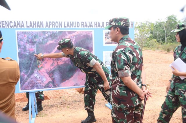 Putrakepri.com, Tanjungpinang-Panglima Komando Operasi Udara (Pangkoopsud) I Marsda TNI Bambang Gunarto meninjau langsung lokasi lahan Apron dan Taxywat Lanud RHF, Senin 20 Maret 2023.