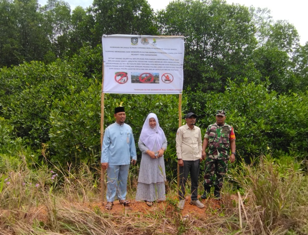 Dan isi dari tanda itu menerangkan bahwa kawasan ini (Hulu Sungai Carang) adalah kawasan hutan bakau. Dilarang menebang dan menimbun hutan mangrove/bakau tanpa izin dari pejabat yang berwenang.